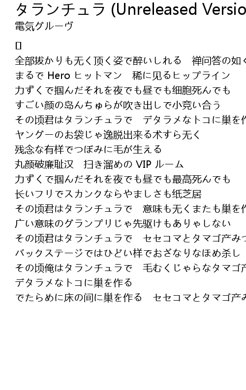 | 歌曲 | タランチュラ (Unreleased Version) |