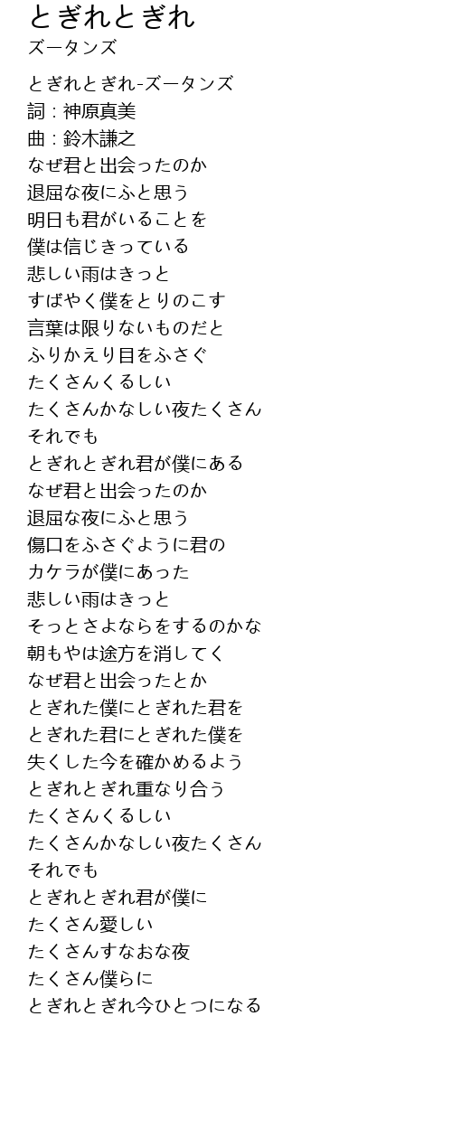 | [00:00.00] | とぎれとぎれ-ズータンズ |