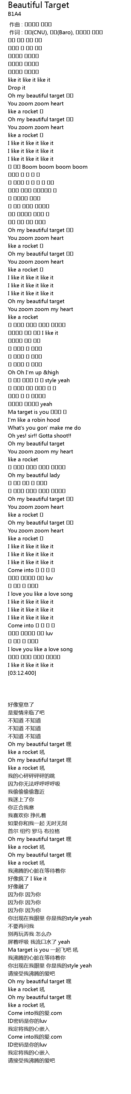 | [00:35.240] | Oh my beautiful target 헤이 |