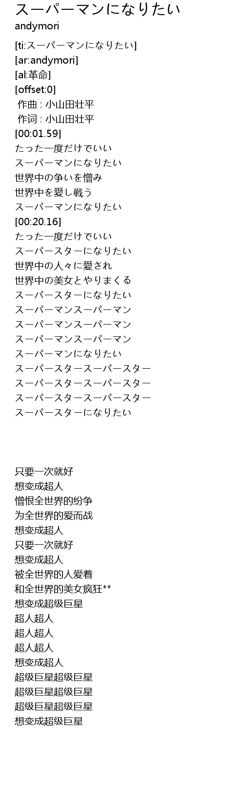 | [00:17.99] | スーパーマンになりたい |