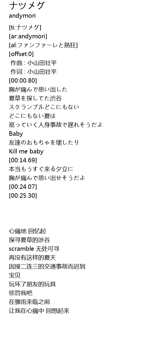 | [00:08.06] | 巡っていく人身事故で遅れそうだよ |