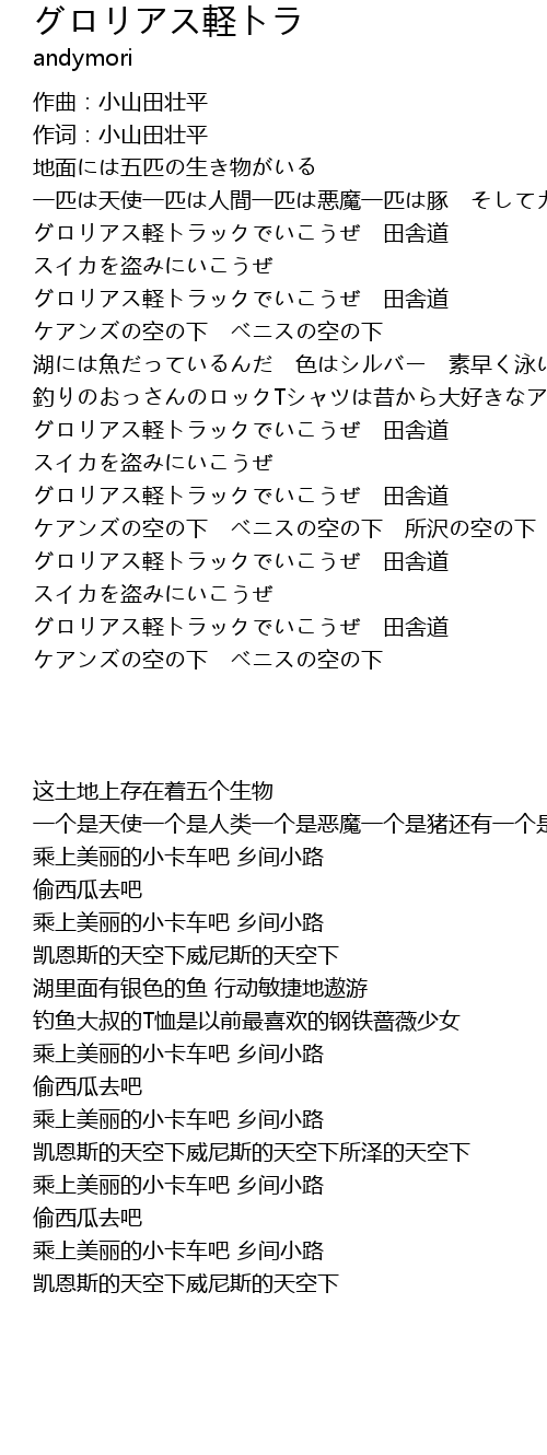 | 歌曲 | グロリアス軽トラ |