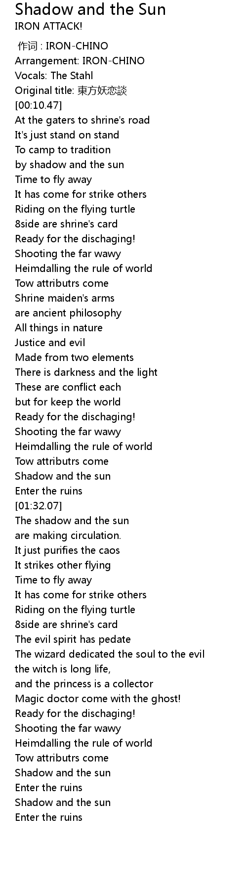 | [00:05.98] | Arrangement: IRON-CHINO |