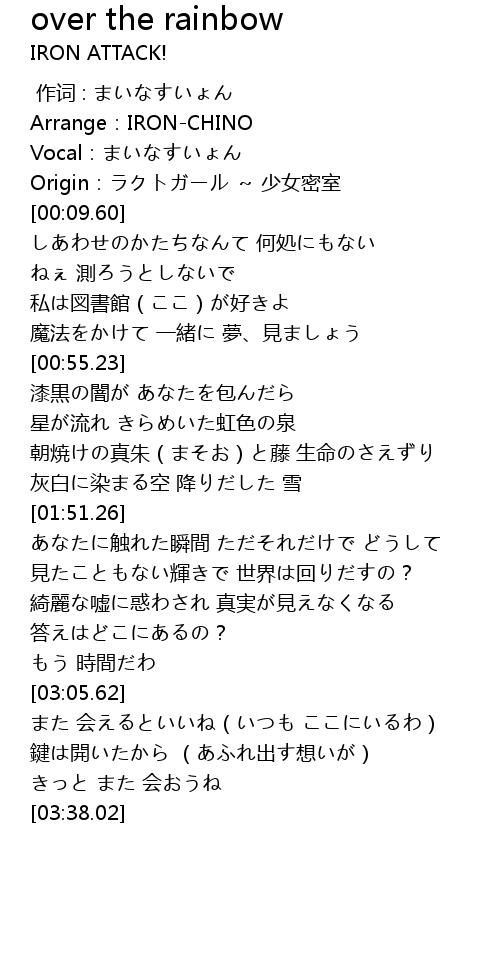 | [03:12.50] | また 会えるといいね(いつも ここにいるわ) |
