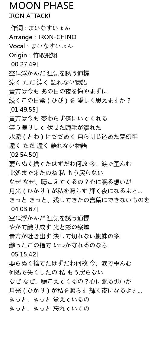 | [02:38.73] | 永遠(とわ)にさざめく 自ら閉じ込めた夢幻牢 |