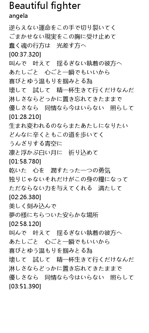 | [00:15.280] | 逆らえない運命をこの手で切り裂いてく |