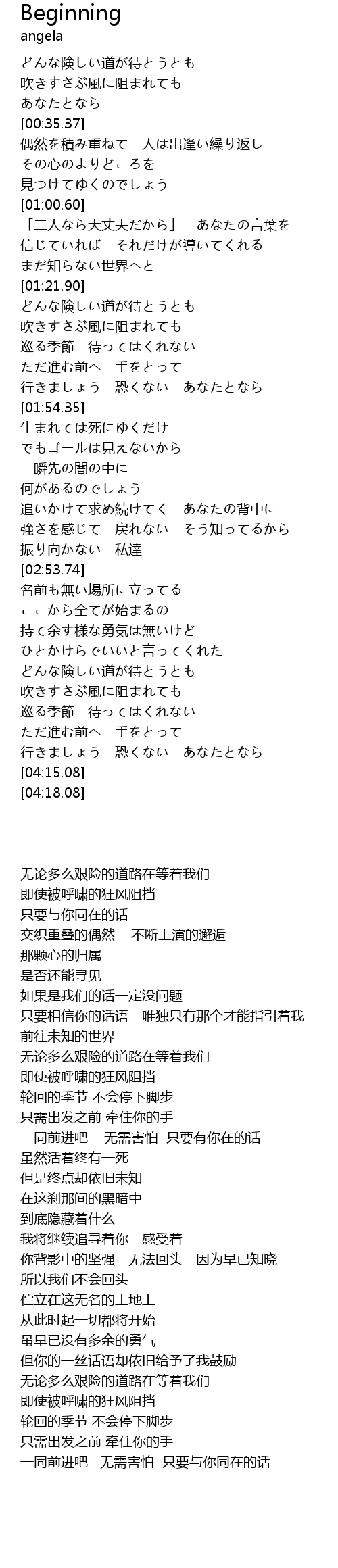 | [04:03.08] | 一同前进吧 无需害怕 只要与你同在的话 |