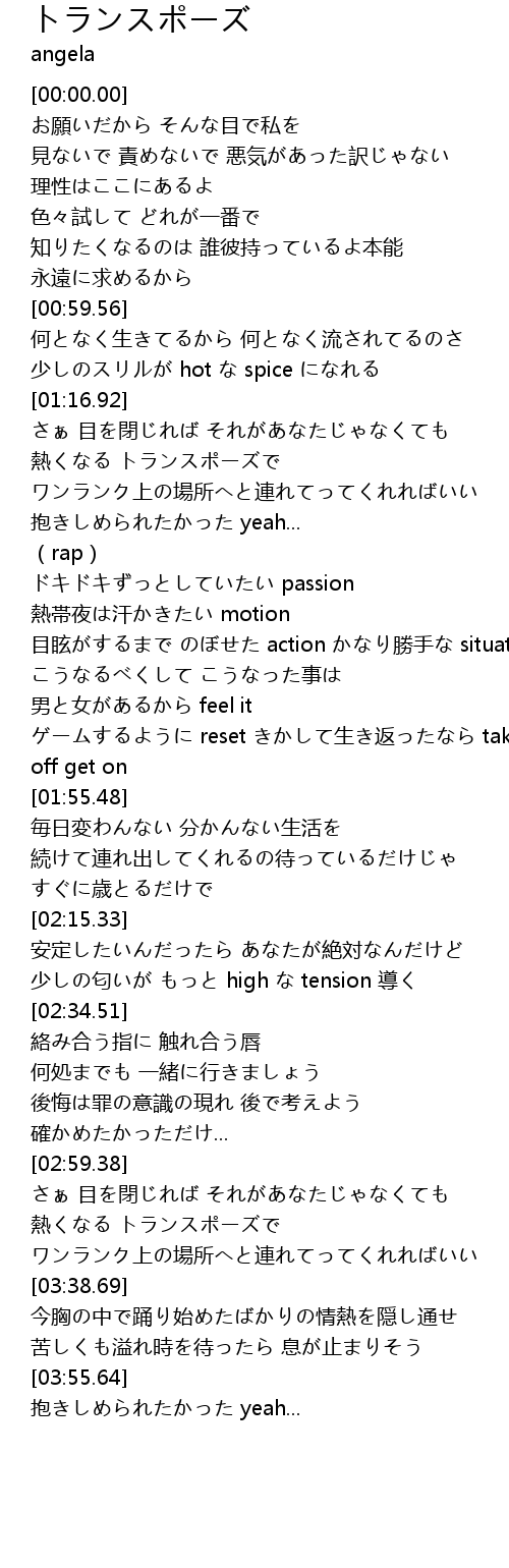 | [01:22.57] | 熱くなる トランスポーズで |