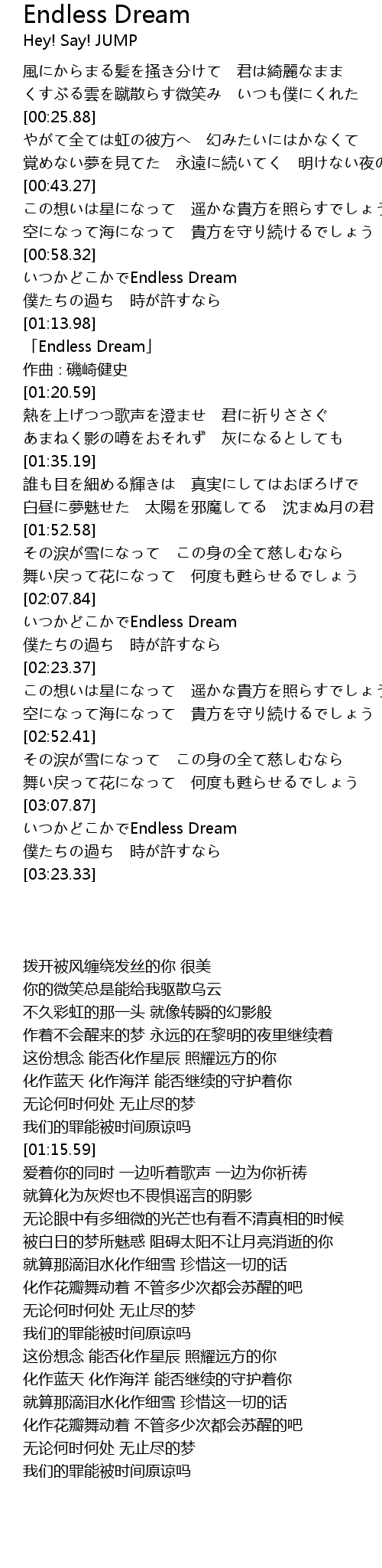 | [00:34.63] | 作着不会醒来的梦 永远的在黎明的夜里继续着 |