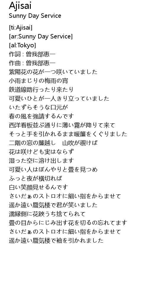 | [00:22.09] | 作詞 : 曽我部恵一 |