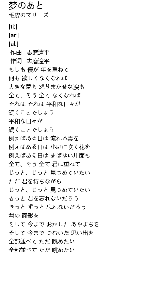 | [00:25.93] | もしも 僕が 年を重ねて |