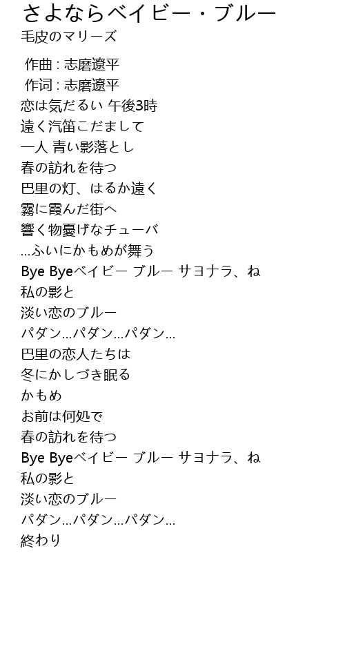 | [01:19.37] | Bye Byeベイビー ブルー サヨナラ、ね |