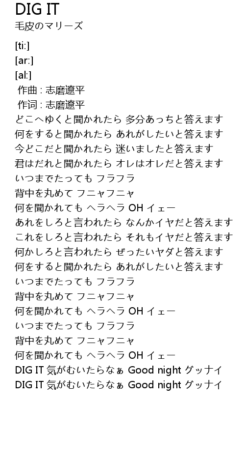 | [03:21.95] | DIG IT 気がむいたらなぁ Good night グッナイ |