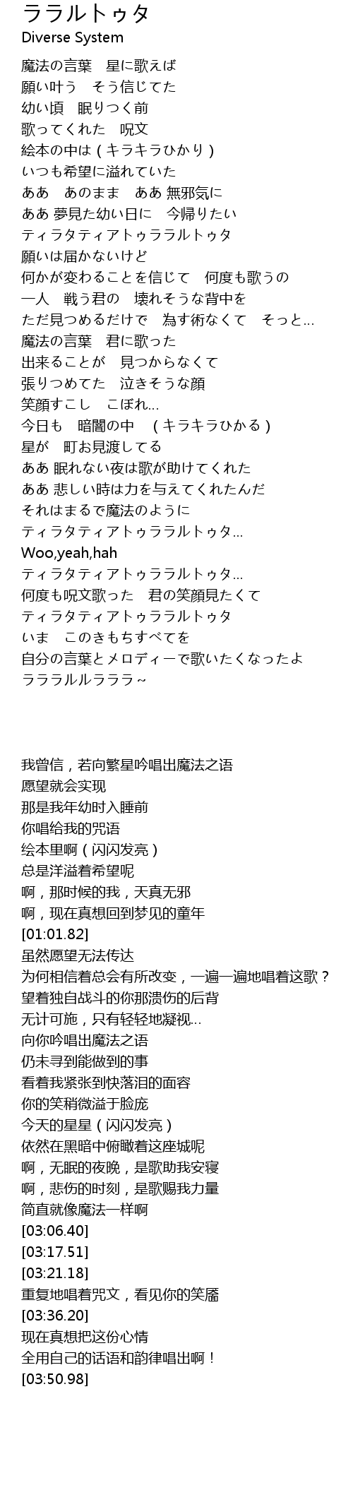 | [03:21.18] | ティラタティアトゥララルトゥタ... |