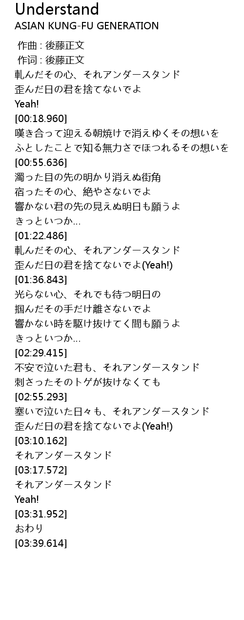 | [01:22.593] | 軋んだその心、それアンダースタンド |