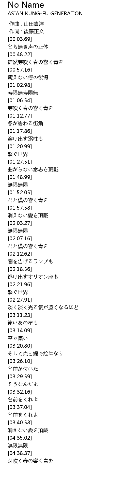 | [03:35.44] | 名前をくれよ |