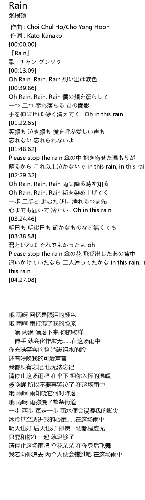 | [00:42.04] | Oh Rain, Rain, Rain pu jia ru |