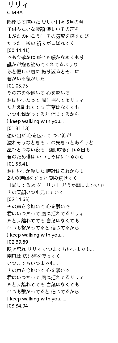 | [02:20.39] | 君はいつだって 風に揺れてるリリィ |