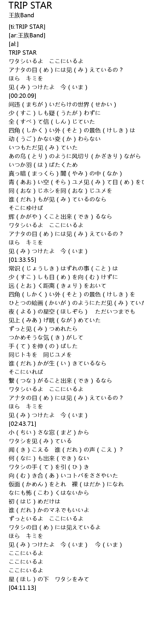 | [04:00.95] | 星(ほし)の下 ワタシをみて |
