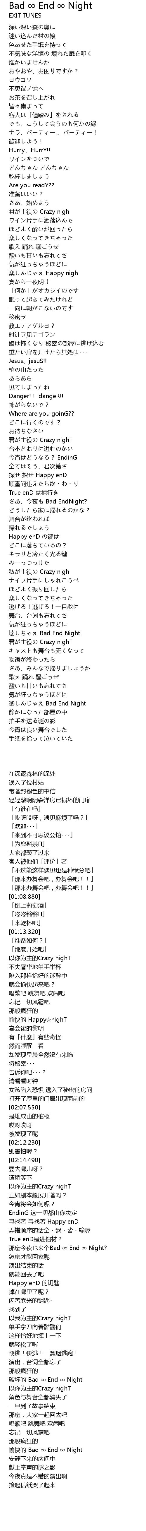 | [03:42.610] | 愉快的 Bad ∞ End ∞ Night |