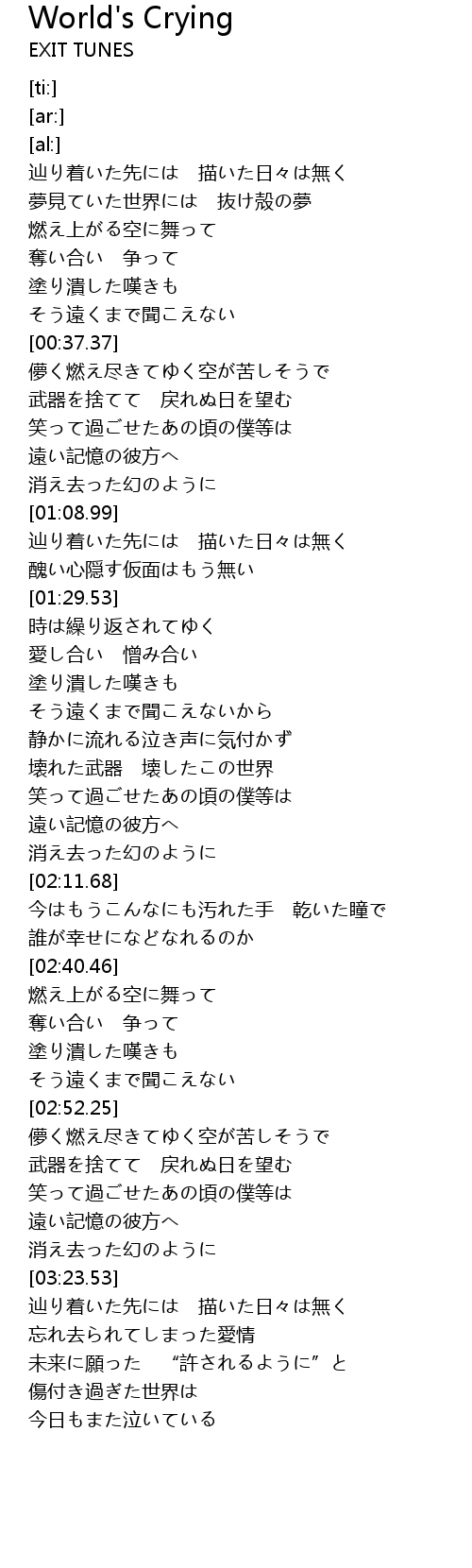 | [03:42.44] | 傷付き過ぎた世界は |