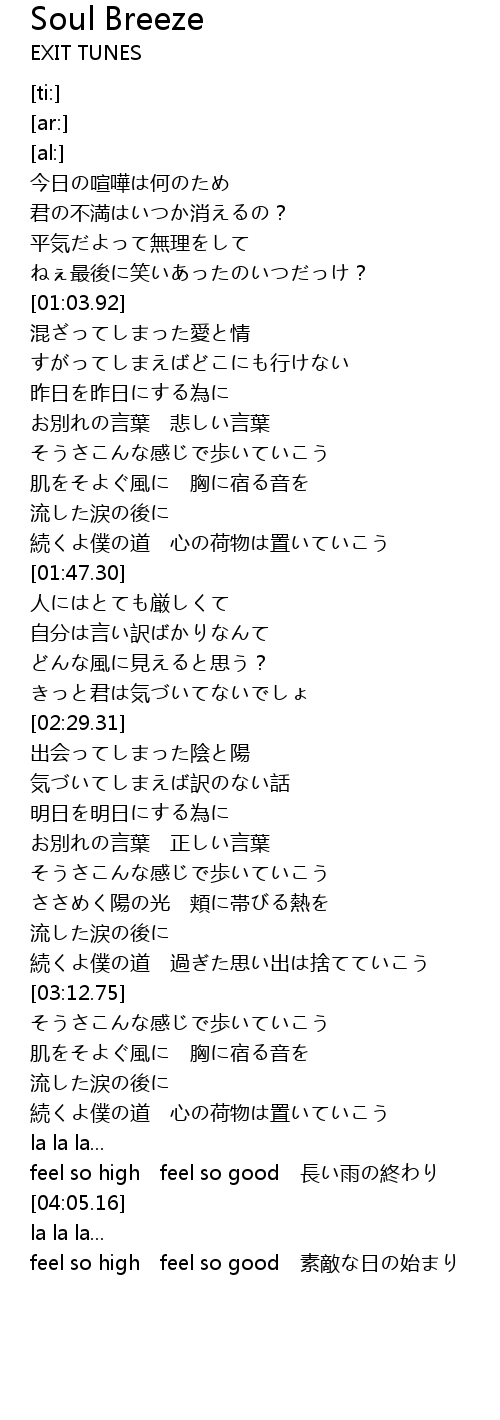 | [04:00.41] | feel so high feel so good 長い雨の終わり |