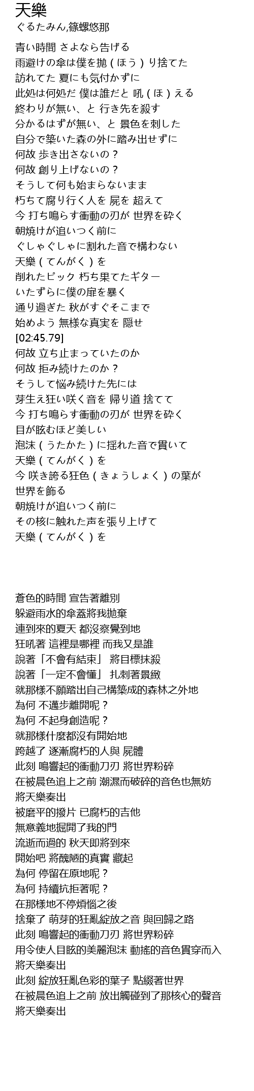 | [03:22.79] | 捨棄了 萌芽的狂亂綻放之音 與回歸之路 |