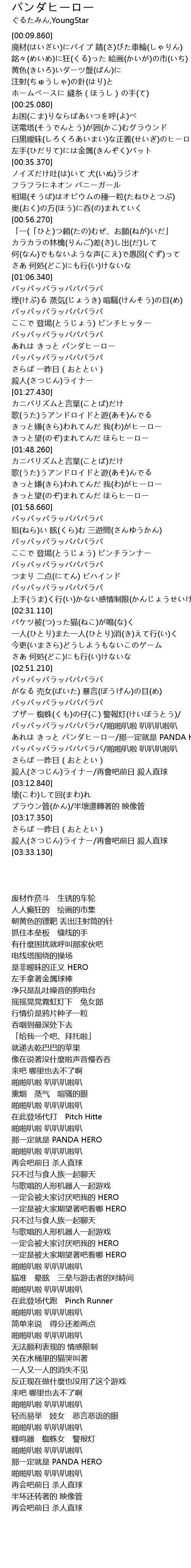 | [03:05.110] | あれは きっと パンダヒーロー/那一定就是 PANDA HERO |
