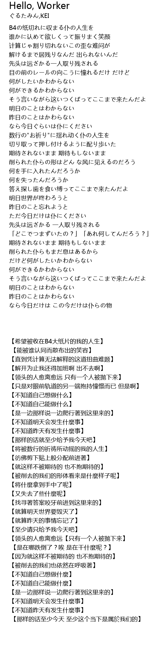 | [02:40.70] | 「どこでつまずいたの?」「あれ何してんだろう?」 |