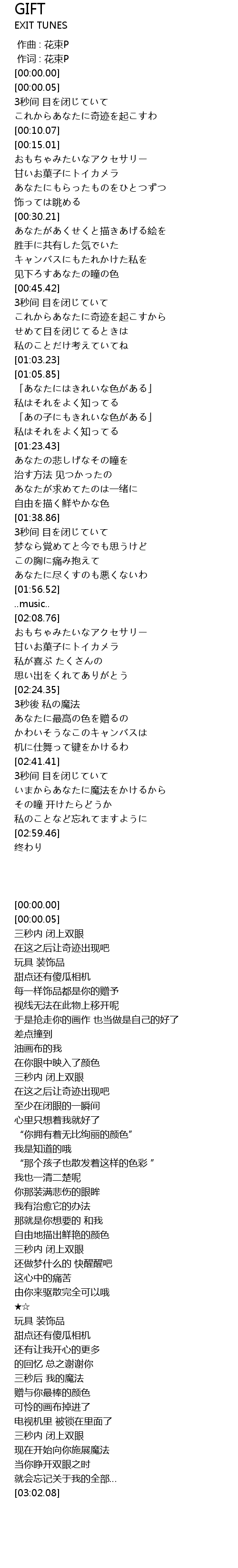 | [02:17.12] | 私が喜ぶ たくさんの |