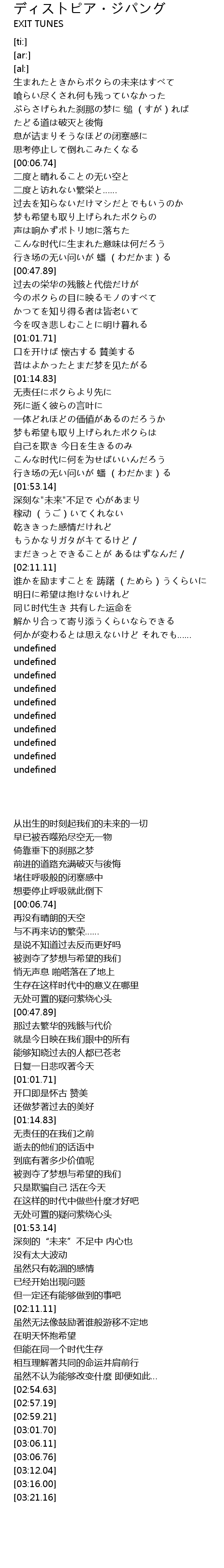 | [01:47.76] | こんな时代に何を为せばいいんだろう |