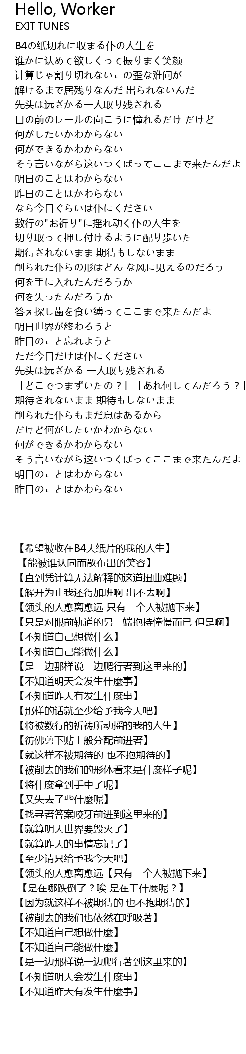 | 歌曲 | Hello, Worker |