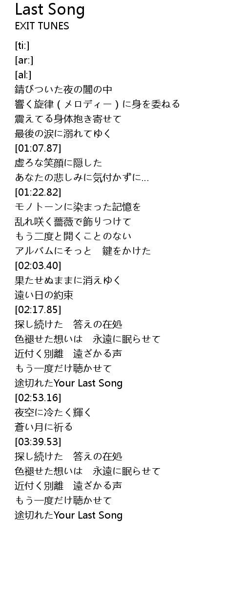 | [03:57.59] | 近付く別離 遠ざかる声 |