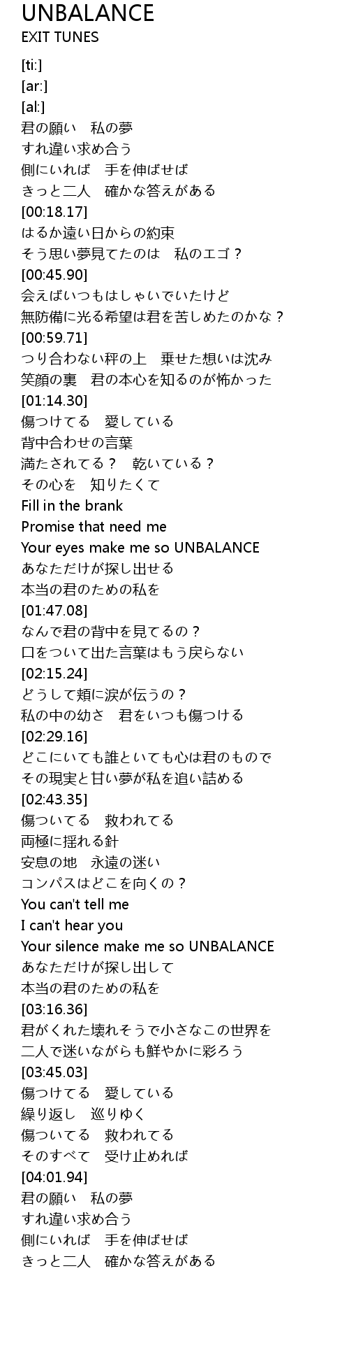 | [01:33.00] | Your eyes make me so UNBALANCE |
