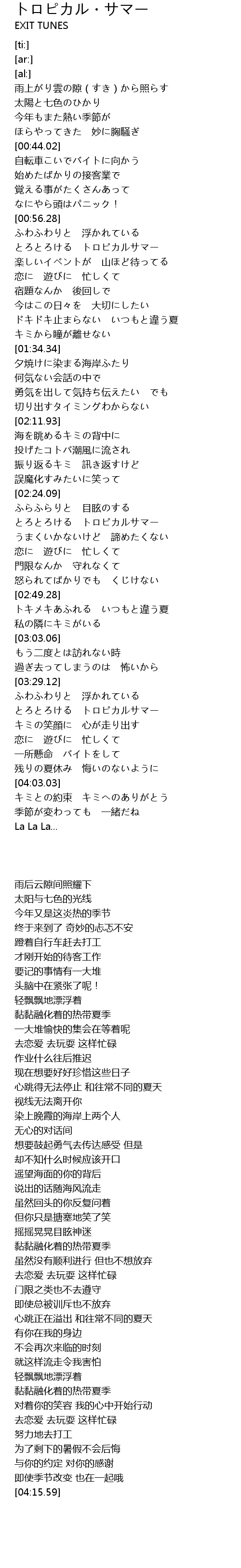 | [03:41.55] | とろとろける トロピカルサマー |
