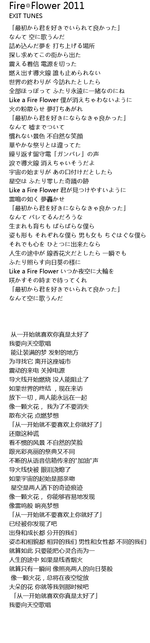 | [00:59.16] | Like a Fire Flower 僕が消えちゃわないように |