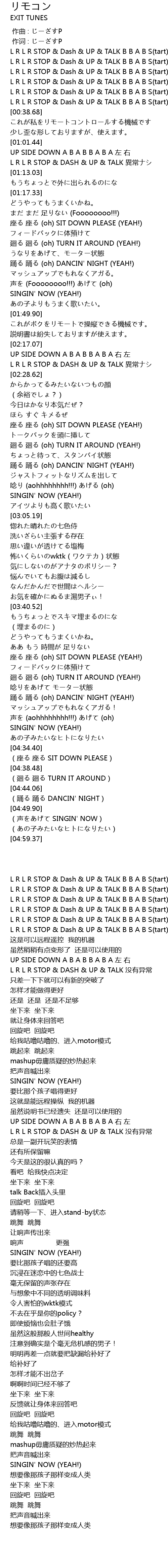 | [01:07.45] | L R L R STOP DASH UP TALK yi chang |