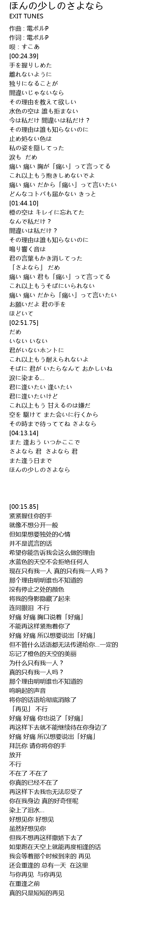 | [02:28.58] | 痛い 痛い 君も「痛い」って言ってる |