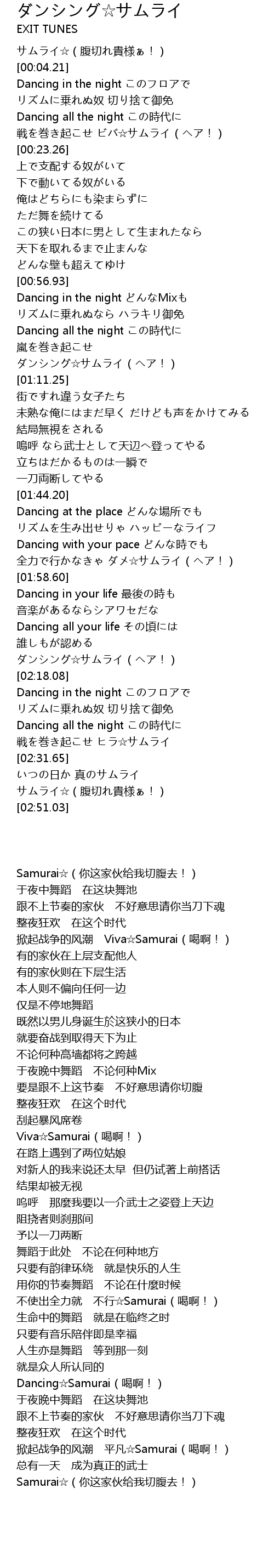 | [02:16.39] | Dancing☆Samurai(喝啊!) |