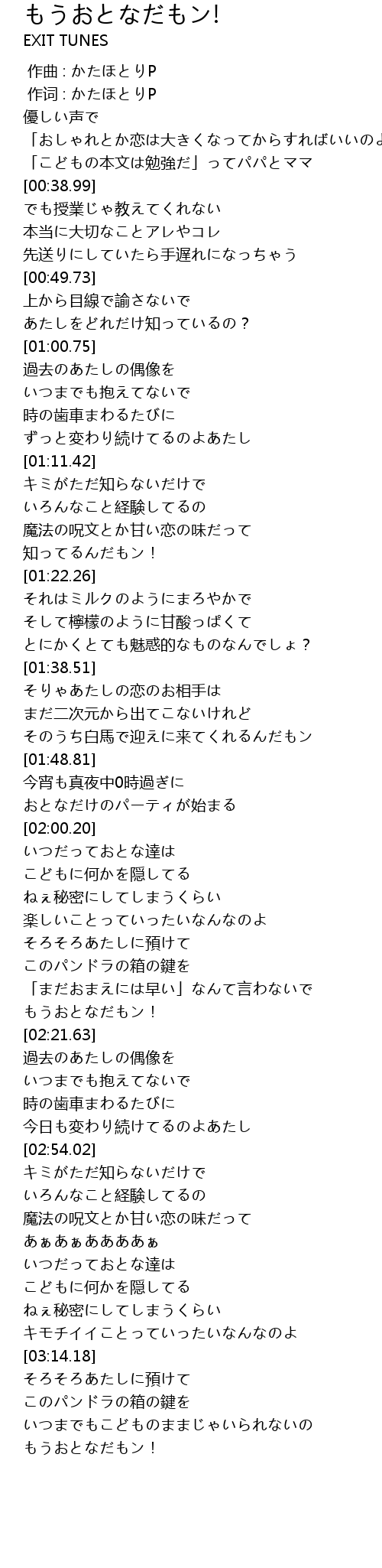| [03:23.57] | もうおとなだもン! |