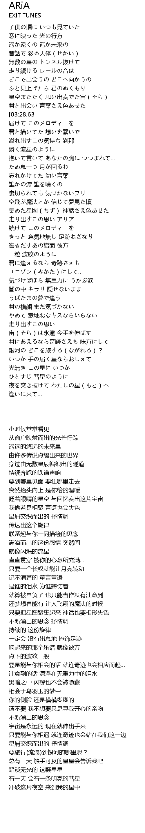 | [01:06.02][03:28.63] | 星くずが紡ぎ出す アリア |