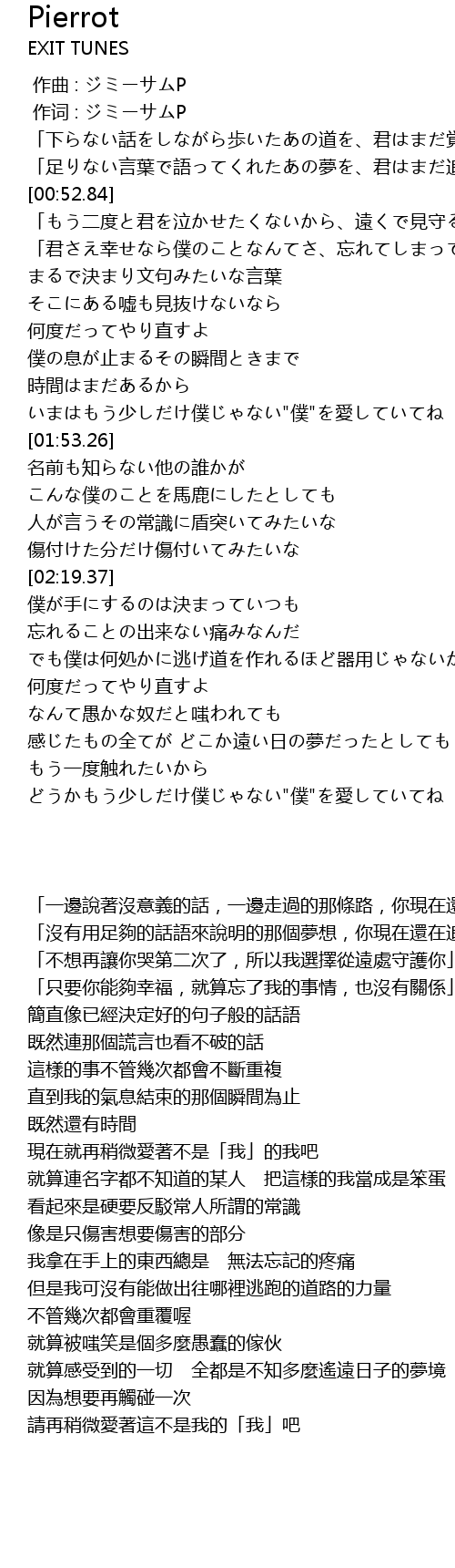 | [01:45.19] | いまはもう少しだけ僕じゃない"僕"を愛していてね |