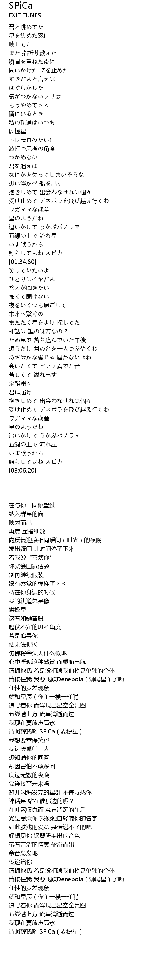| [01:32.86] | 请照耀我哟 SPiCa(麦穗星) |