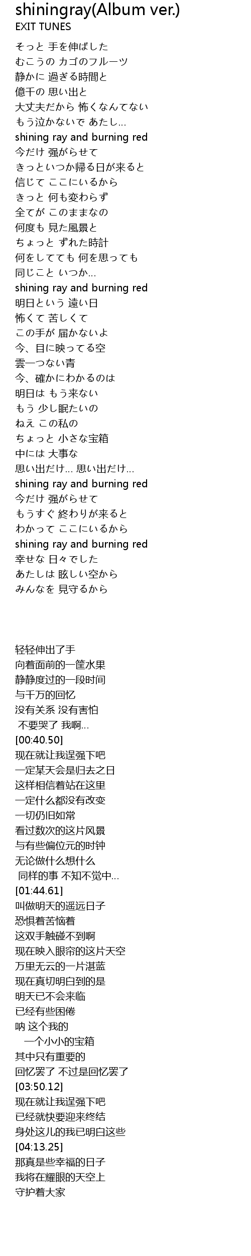 | [04:13.25] | shining ray and burning red |