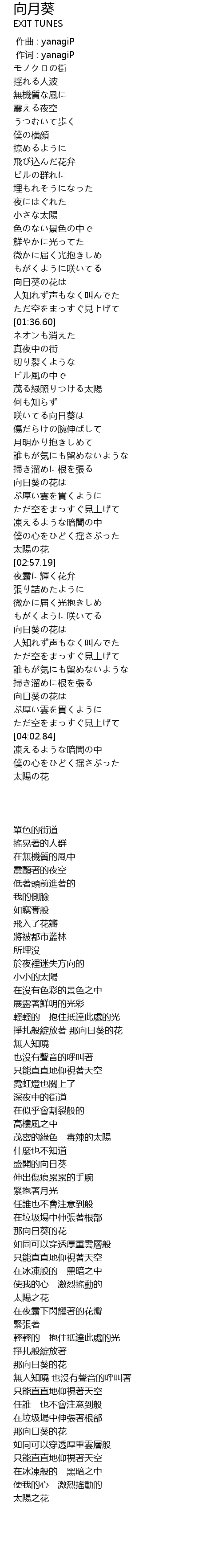 | [01:21.33] | 掙扎般綻放著 那向日葵的花 |