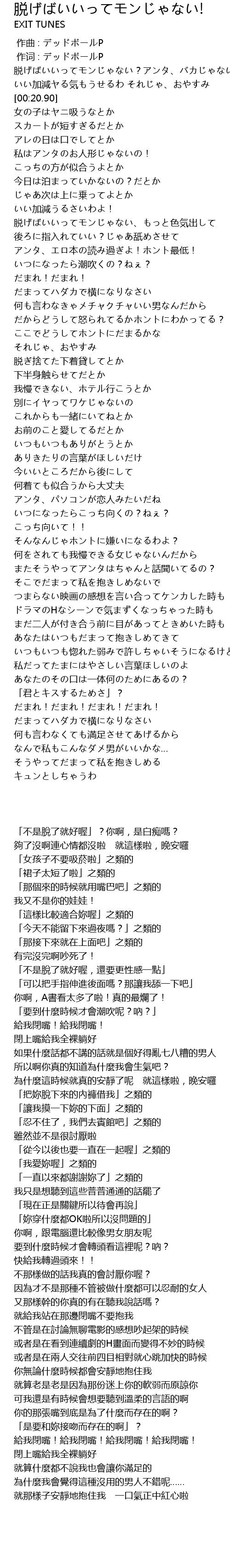 | [01:21.97] | 閉上嘴給我全裸躺好 |