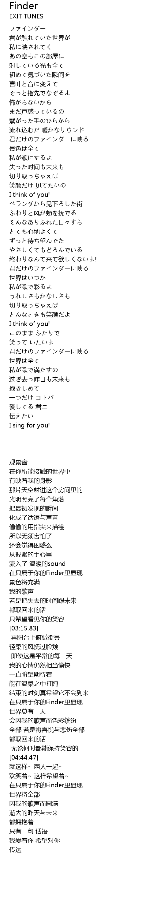 | [04:13.55] | 在只属于你的Finder里显现 |