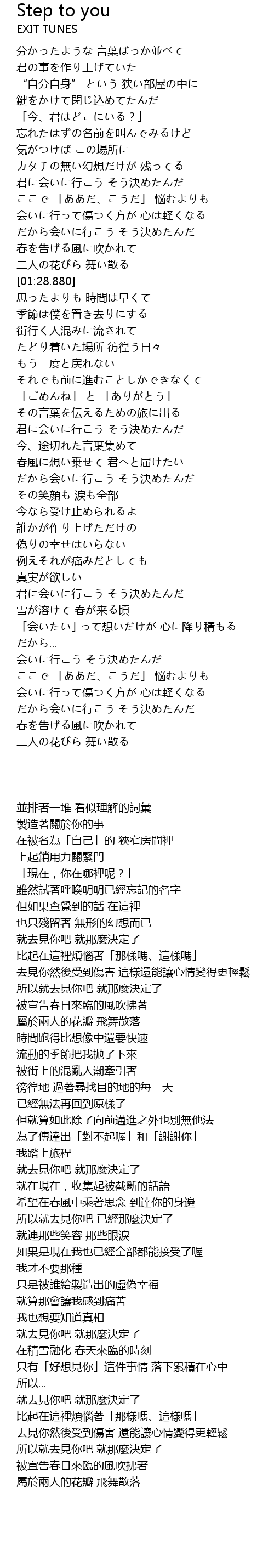 | [02:28.720] | 希望在春風中乘著思念 到達你的身邊 |