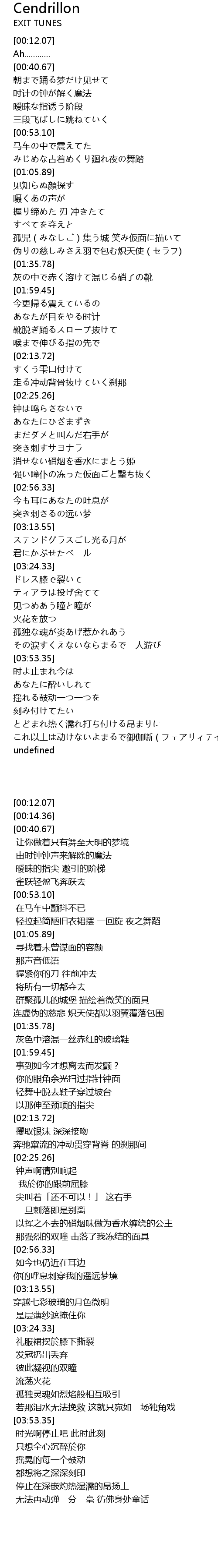 | 歌曲 | Cendrillon |