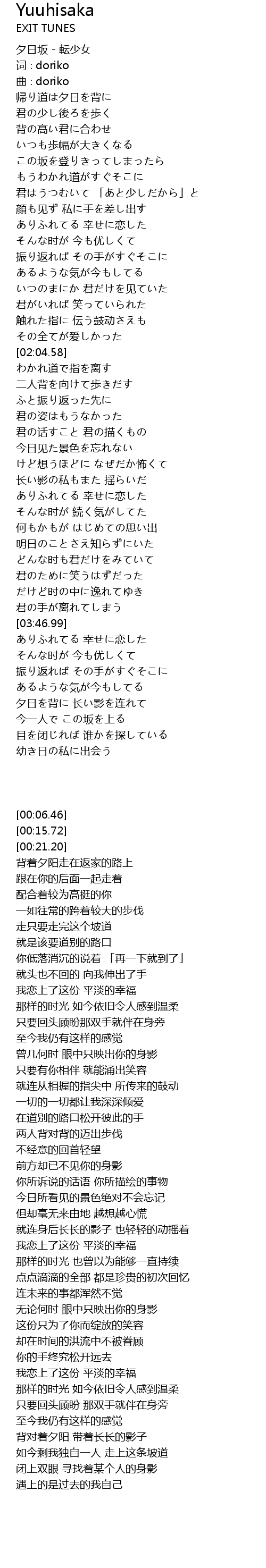 | [00:06.46] | 夕日坂 - 転少女 |